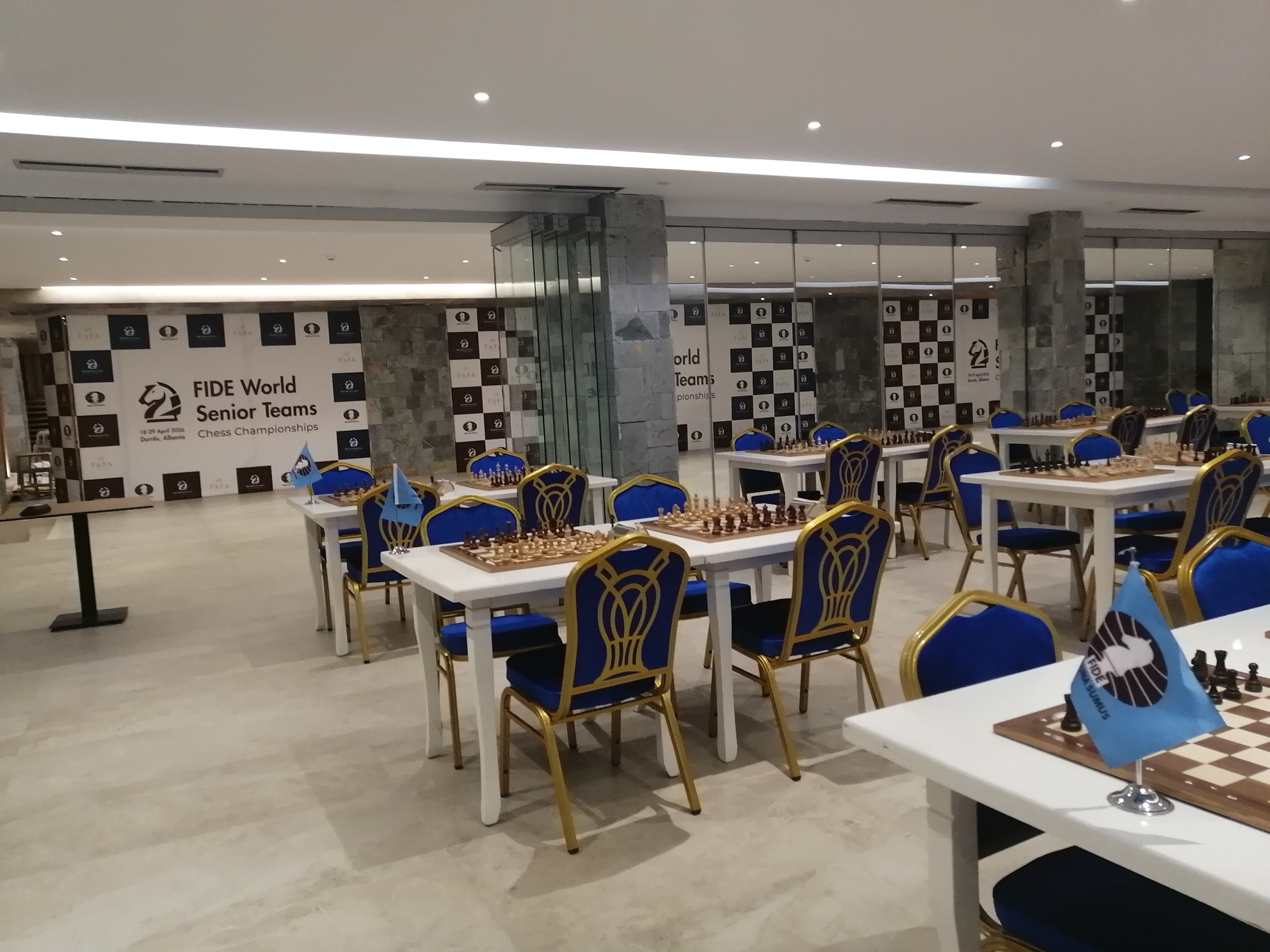 De WSTCC is nu echt begonnen. Alle 5 spelers hadden een voorspoedige vlucht, teamcaptain Luc al op vrijdag 17 april en de andere 4 (Ynze, Rien, Theo en Bob) op zaterdag 18 april. Het 5-sterrenresort/-hotel Grand Blue Fafa (zie afbeelding boven dit verslag) is volgens de meesten van ons één van de beste locaties waar een team van Voerendaal/Zuid Limburg in de laatste jaren heeft overnacht bij WK’s en EK’s. Prima kamers, een mooi zwembad (zowel binnen als buiten), lekker eten, een mooie speelzaal (eigenlijk 4 speelzalen, die bij elkaar liggen en voor alle spelers toegankelijk zijn, zie foto’s verderop in dit verslag) en een mooie en gezellige kilometerlange boulevard tussen hotel en het strand. Overigens is de omgeving erg toeristisch met een lange ketens van hotels en appartementen over een lengte van een groot aantal kilometers langs de zee (wij zitten ongeveer een 15 km ten zuiden van het centrum Durrës en zo te zien is de hele kuststrook tussen de tweede stad van Albanië en ons hotel bezaaid met hotelbeton). Voordeel is dat het op de boulevard best gezellig is.