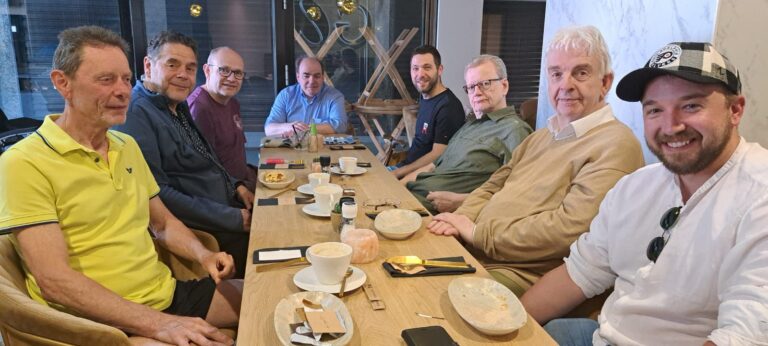 (op bovenstaande foto v.l.n.r.: Ger, Hans, Marcel, Ron, Michel, Paul, Gert en teamcaptain Sander tijdens het ontbijt) Het is vandaag 12 mei 2024 en er staat weer een LISB wedstrijd