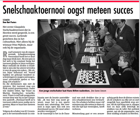 Ik schaak niet zo veel meer, zeker niet ’s avonds. Dus de clubavond op de nieuwe locatie heb ik nog niet bezocht. Wel wil ik vermelden dat ik de gevolgde procedure om tot een besluit te komen om van locatie en clubavond te veranderen heel goed vond. Jammer is het dat het niet tot vollere speelavonden geleid heeft. Maar eigenlijk is dat een oud probleem, ik herinner mij nog een flink aantal jaren geleden meegewerkt te hebben naar een onderzoek waarom de clubavonden zo slecht bezet waren. Toen was de uitkomst van het onderzoek dat onze leden druk bezet door hun carrière, en daardoor niet naar de clubavond maar wel in de weekenden konden komen schaken. Een oplossing voor dit oude probleem zie ik niet. Onvermeld wil ik niet laten de schaakvriendschappen uit ons maandagmiddagclubje, de schaaksenatoren. Daar wel een goede opkomst van tegen de 90%.