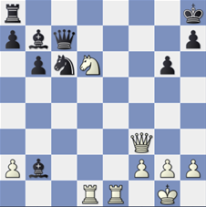 Frank Clevers schreef hierover in het Limburgs Dagblad het volgende: “In dit diagram de eindstelling van de partij tussen Fred Tammen en Huub Senden. Tammen bediende de witte stukken en wist deze zodanig neer te zetten dat de partij al binnen 24 zetten voorbij was. Op de 24e zet dirigeerde de witspeler zijn paard naar e8, waarna zwart het zo duister inzag dat hij besloot op te geven.