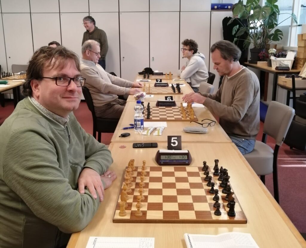 Op bord 1 speelt Jozef met wit tegen Bert-jan Panjoel. Hij stelt zijn teamgenoten teleur, maar ook vooral zichzelf. Het is bekend dat wij na de wedstrijd gaan eten bij een Pools restaurant genaamd “mevrouw Polska”. De uitgelezen mogelijkheid om te openen met 1 b4, het Pools. Jozef pakt de b-pion vast, maar speelt in een moment van verstandsverbijstering b3. Het is echter roeien met de riemen die je hebt en hij laat zien waarom hij FM is met een clean win. Tussenstand 1.5 – 1.5